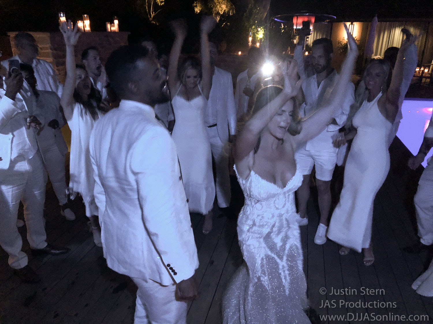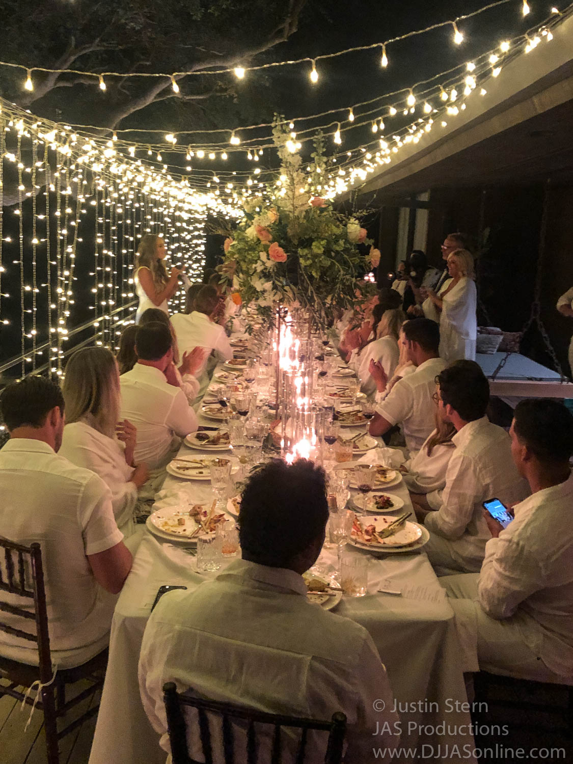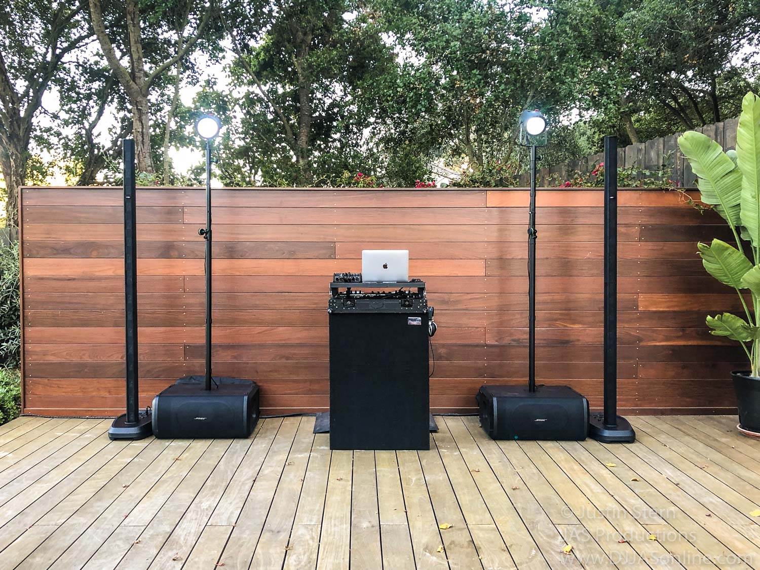 I provided wireless and battery-powered speakers for the ceremony, cocktail, and even dinner. I used a separate sound system for the dancing on the deck.