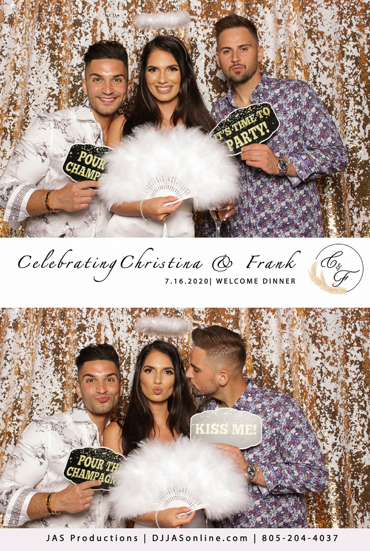 Everyone who partook in the photobooth received both a digital and a printed copy of their images. Christina and Frank also received an online gallery of each individual image, as well the above strip postcard with graphics included.